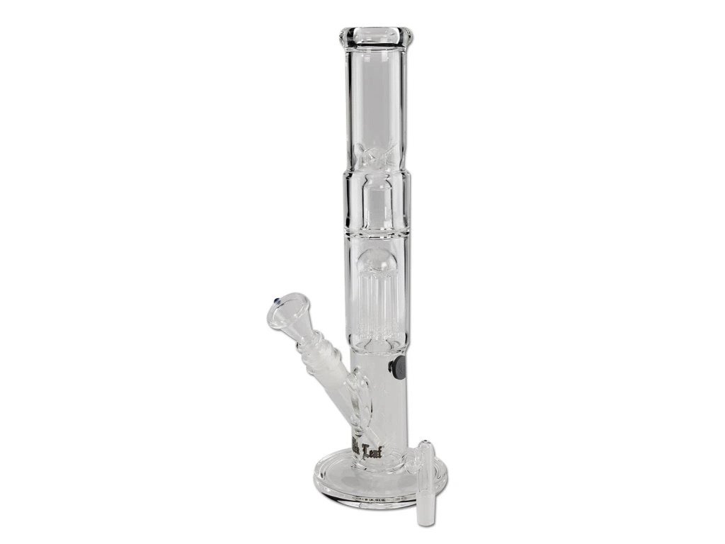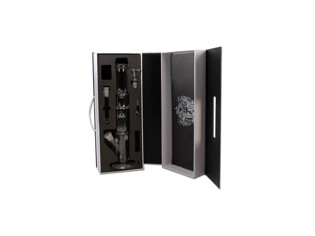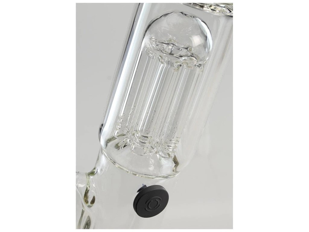 Nejlepší borosilikátové sklo s tloušťkou stěny stabilních 5 mm, 6ramenný perkolátor, kopule proti stříkající vodě, ledová komora, adaptér difuzoru, otvor se zástrčkou, velká miska na bylinky a miska na olej/vosk.